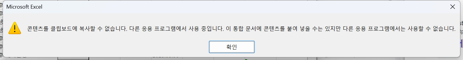 엑셀내에서는 복사가 되는데 바깥으로 복사가 안되는 현상입니다.